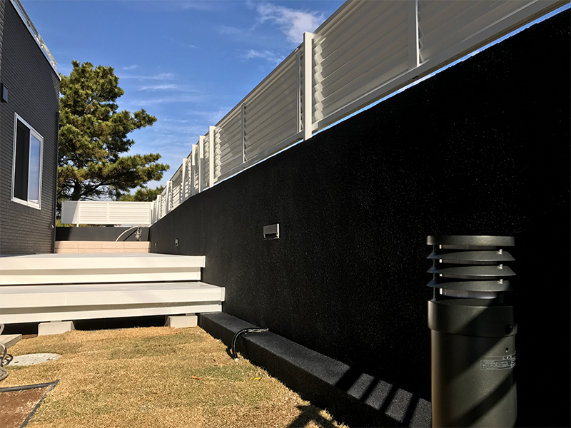 お庭には大理石調のデッキ(ホワイト色)を一面に設置し、昼間は子供たちとBBQ、夜には夫婦のくつろぎの時間を叶えてくれる空間となりました。