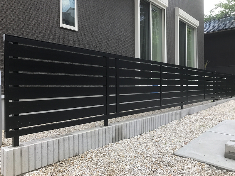 フェンス(YKK/レスティナフェンス21型) 目隠しフェンス(LIXIL/セレビューフェンスR3型) 機能門柱(YKK/シンプルレオポスト1型)