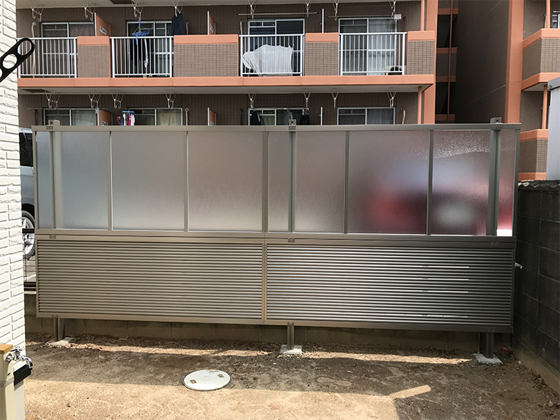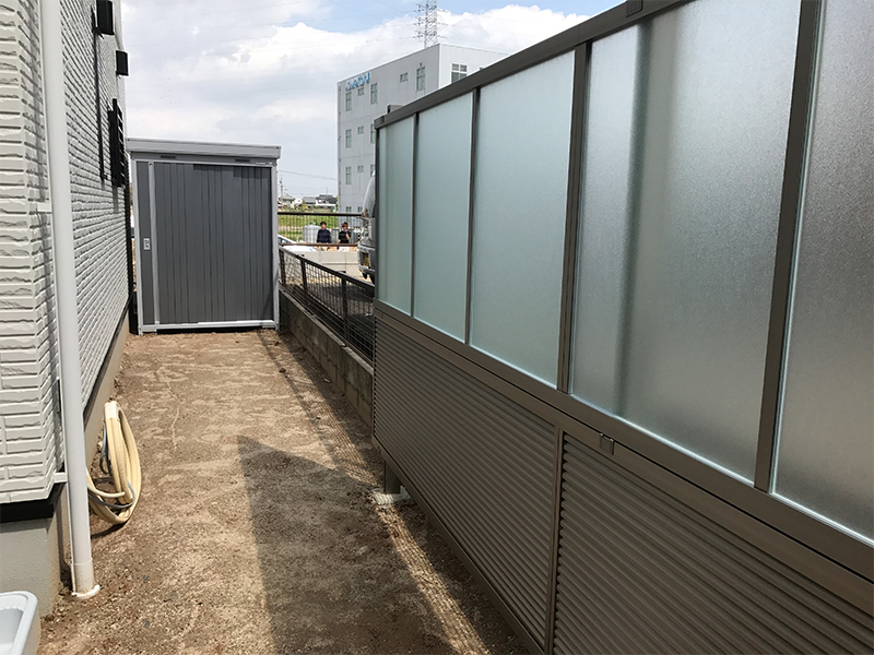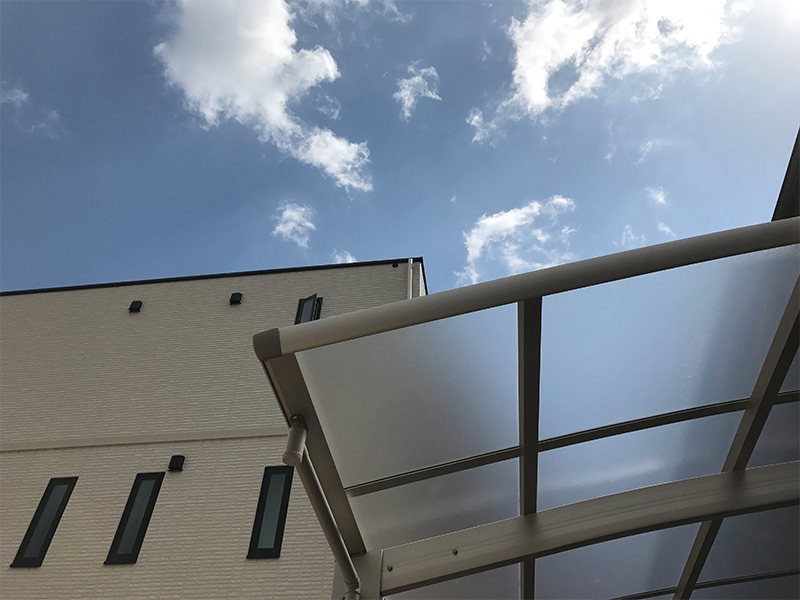 目隠しフェンスやカーポートにかすみ調のポリカ材を使用することにより、太陽光は差し込みながらも目隠しも出来る一石二鳥の商品となります。