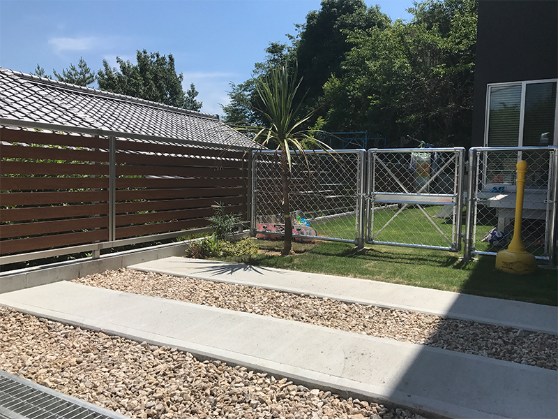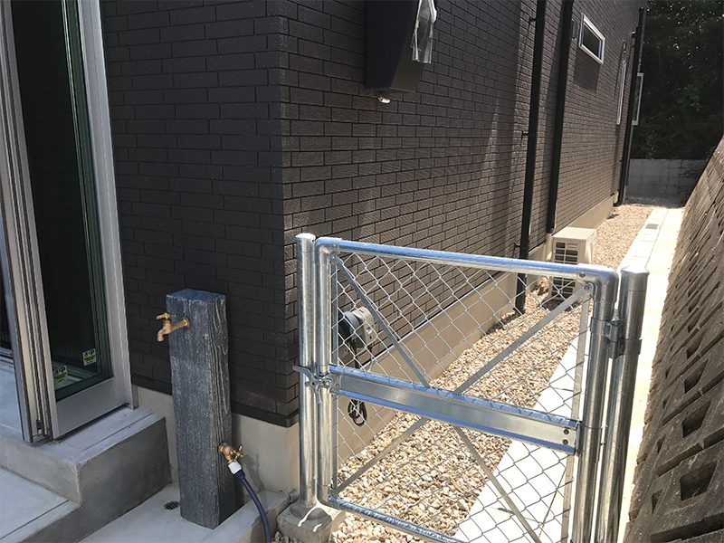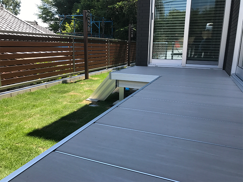 木目調フェンス(YKK/ルシアスフェンスF04型) フェンス(YKK/ルシアスフェンスLite3型) 機能門柱(YKK/ルシアスウォール03型) フェンス&門扉(PCフェンス) 人工デッキ(三協アルミ/ラステラ) 立水栓(ニッコーエクステリア/ランバータイプLS-AW2)